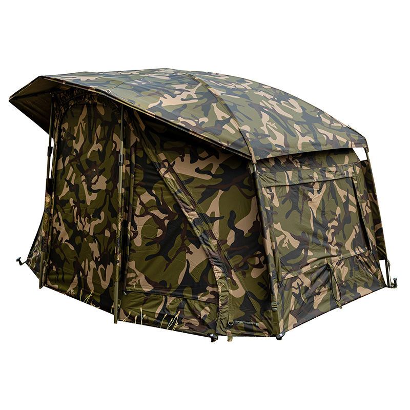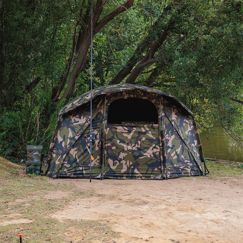 The Fox Frontier II Bivvy features an upgraded and improved design with a number of alterations, additions and extras over the original. Constructed from 100% Polyester khaki VenTec fabric with blackout laminate lining, 20,000mm hydrostatic head. With a lightweight aluminium frame with high, flat back design for maximum headroom and usable internal space.