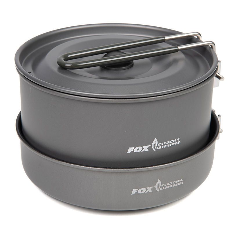 The Fox Cookware 3 Piece Cook Set gives you a frying pan, medium saucepan and a 0.9l Kettle. Packing together neatly with the saucepan sitting inside the frying pan and the kettle inside the saucepan. Featuring a thicker aluminium on the pans that spreads heat more evenly and allows for a high quality non-stick surface to be applied.