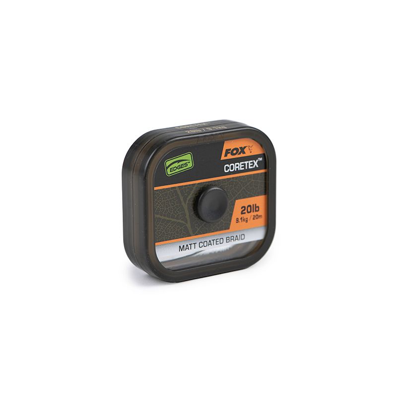 Fox Edges Naturals Coretex is a coated braided hooklink material designed for presenting baits over a wide variety of lakebeds. Supplied on 20m spools, and available in 20, 25 and 35lb breaking strains. The dark green signature Naturals finish outer coating can be stripped back to reveal a supple sinking green braid inner.