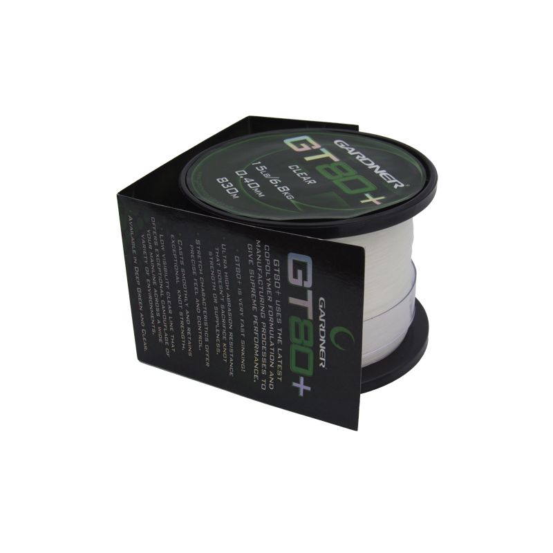 Gardner GT80+ Line is the new generation GT80+ that has evolved directly from Gardner Tackles legendry GT80 main line. GT80+ offers big fish anglers ultimate performance by combining the very latest copolymer formulas and cutting edge precision manufacturing processes to give supreme performance across the entire spectrum of key characteristics that big fish specialists demand.