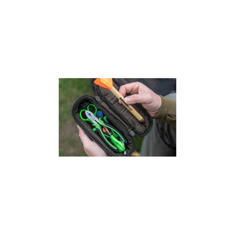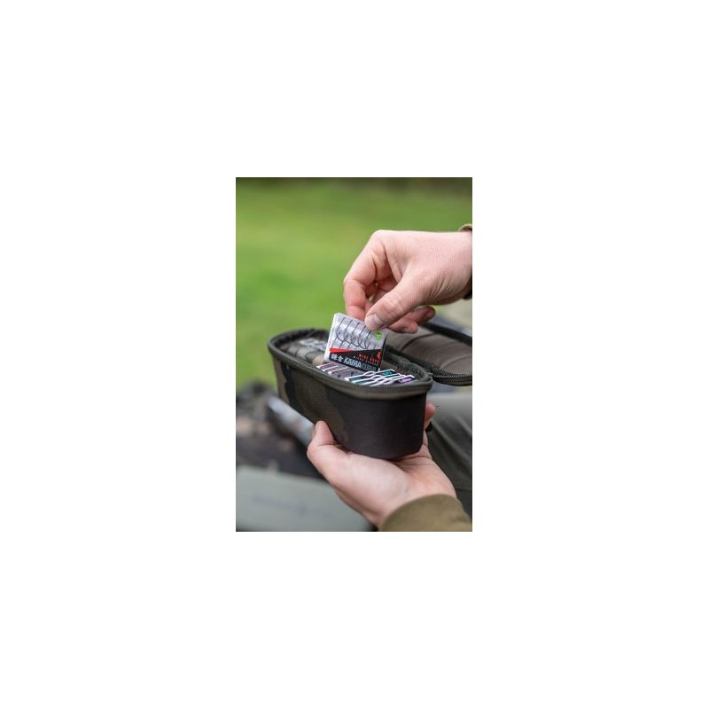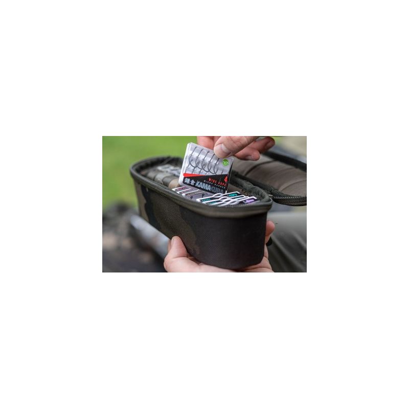 The pouch is made from durable 600D dark kamo fabric with a semi-rigid construction that maintains its shape while protecting your tackle. Dual, heavy-duty zips mean this will last a long time and give you access to your tackle with ease. This pouch is perfect for any items that come on spools, such as Bait Floss, Arma-Kord and hooklink materials. Fans of the Kamakura hooks, the Tackle Pouch 55 is the ideal size for the Kamakura hook boxes as well. It’s also perfect for storing those longer items like Kutters, marker floats and torches!