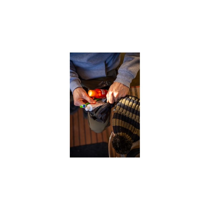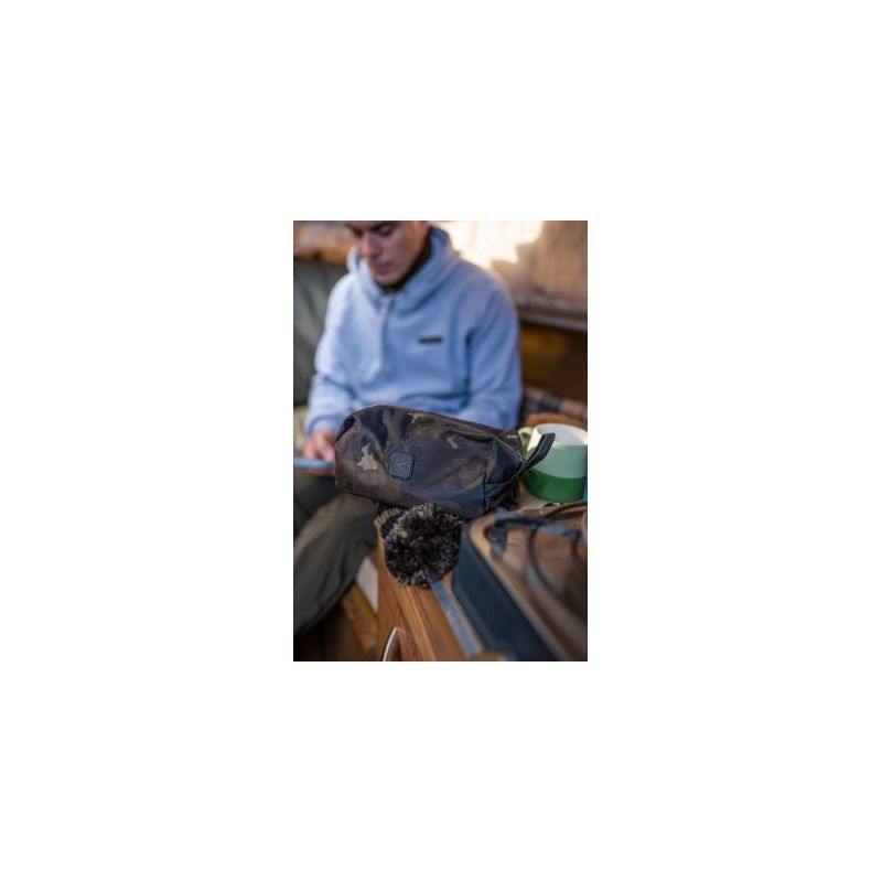 The Korda Dark Kamo Wash Bag is the perfect solution for storing your wash kit essentials. It’s compact and lightweight construction cuts down on weight but is big enough to store all your personal hygiene products such as toothpaste, toothbrush, shower gel, hay fever products and painkillers.