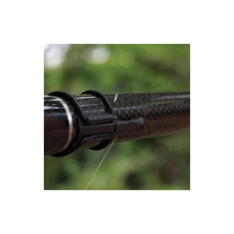 Using a line clip on the rod blank in front of your reel enables you to create the optimum angle for bite indication between the bobbin, hanger and buzzer. By changing the position of a line clip you can fine tune your bite indication to suit different fishing situations.