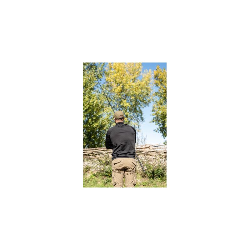 The brushed jersey construction provides optimal heat retention while remaining remarkably breathable. Furthermore, the fitted nature of this base layer eliminates bulk while maximizing thermal efficiency. The high neckline creates an effective barrier against cold drafts and the back will not ride up when casting or baiting up.