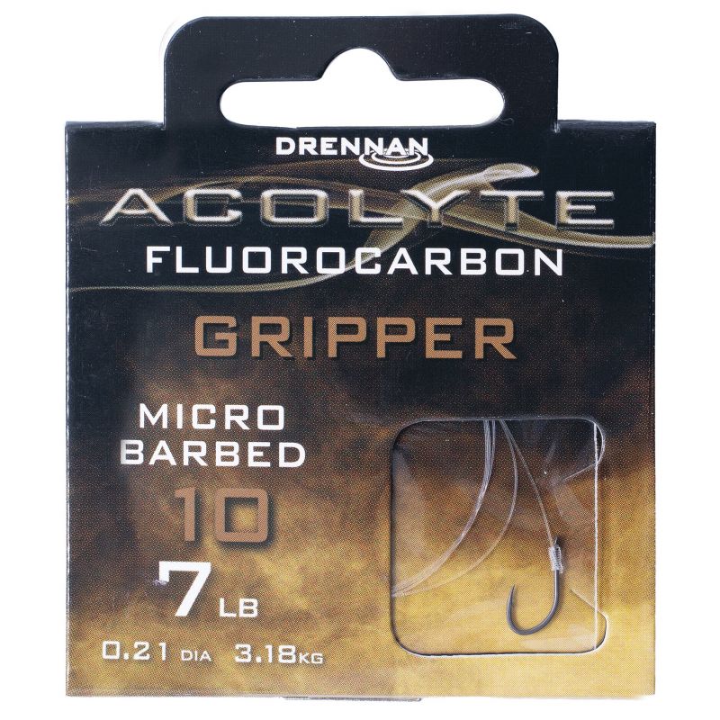 The Drennan Acolyte Gripper micro barbed hooks are hand tied to 50cm of Acolyte Fluorocarbon giving superior presentation for both float and feeder fishing. The Gripper is significantly stronger hook, capable of handling fish of all varieties on natural venues.