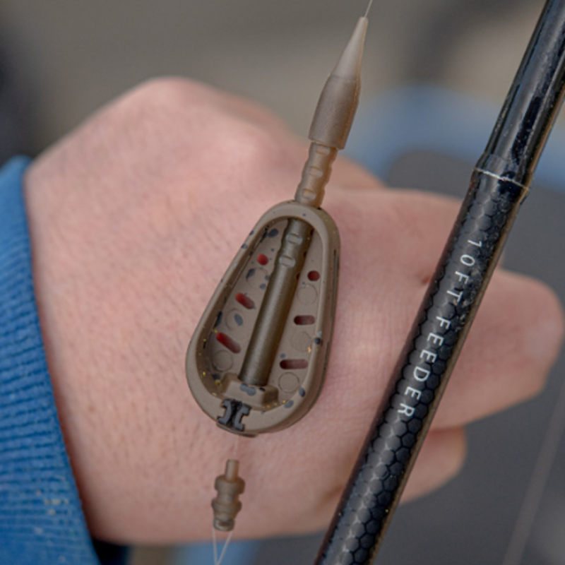 The clever design allow the connector to be pushed into the opening of the feeder stem but without fishing it in place; hook a fish and under pressure, the connector will release and the feeder is truly free-running and fish-safe. Compatible with all Embed feeders, these connectors allow you to quickly attach hooklengths.