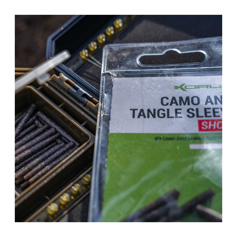 The Korum Camo Anti Tangle Sleeves, provide a short boom to help kick your rig away from the lead or feeder. Perfect for short helicopter rig presentations. Streamlined rubber, made using our superb camouflage finish, for the ultimate rig concealment.