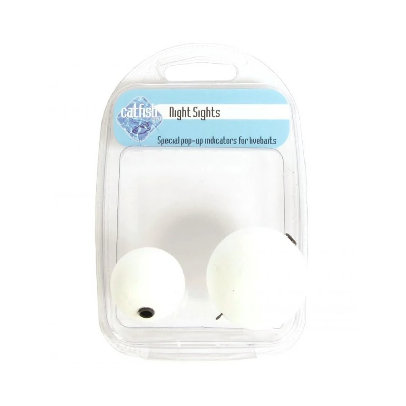 The Catfish Pro Night Sights allows you to fish polyball rig with long hair and have polyball on the surface to monitor bait fish activity, use with chemical light at night to ensure bait is not stuck in weed or dead. It Comes with 2 polyballs each with swivel in the bottom and recess in the top that will take a chemical light.