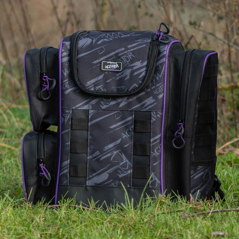 The Wychwood Agitator HD Backpack in small is ideal for roving short session anglers who don’t need to carry the kitchen sink. Manufactured from a hardwearing custom 1200d pvc coated nylon fabric. With a PVC base that gives extra protection when placed on the ground. Featuring a generous main compartment with two small and one large external pocket.