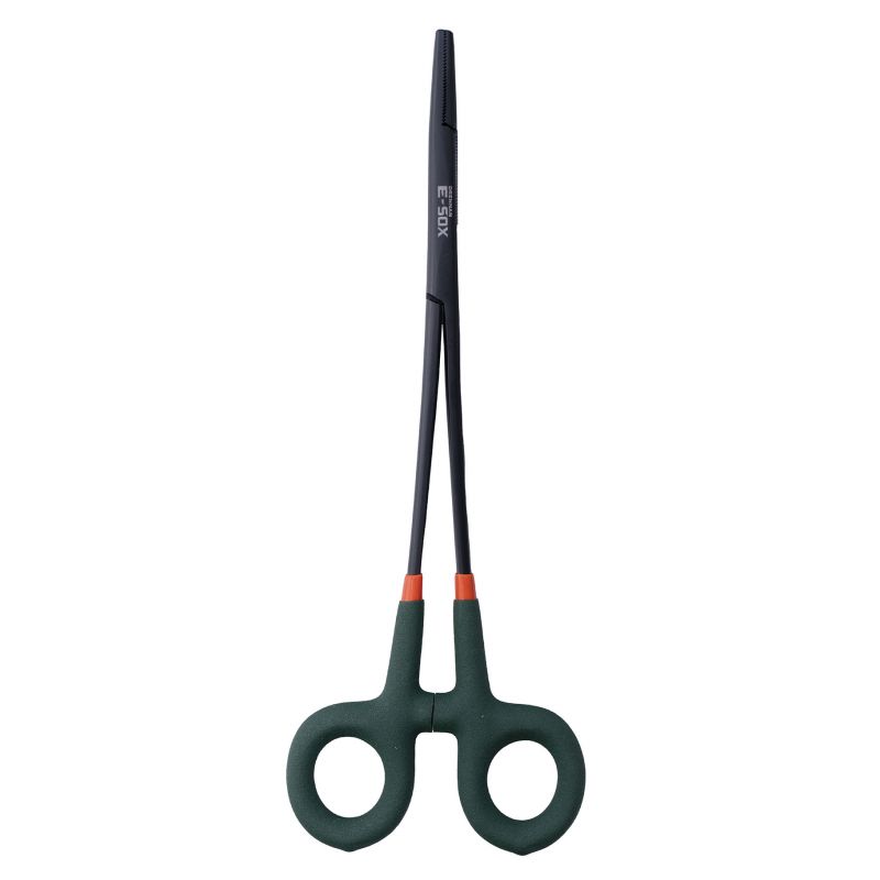 E-Sox Forceps are crafted from high carbon steel with a durable matt black PTFE finish, they offer long-lasting strength and corrosion resistance. The soft-touch coated handle ensures a comfortable, non-slip grip, making them an essential tool for safe and efficient hook handling. Featuring short serrated jaws that securely grip and remove hooks while keeping your hands away from sharp points.