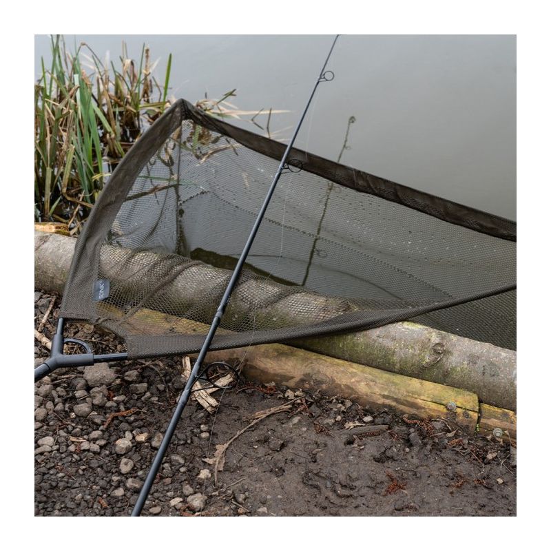 Super stiff net arms with curved end protectors are matched to a medium depth, olive green mesh, which can be tucked into the spreader block retainer for easy manoeuvrability and quick release.